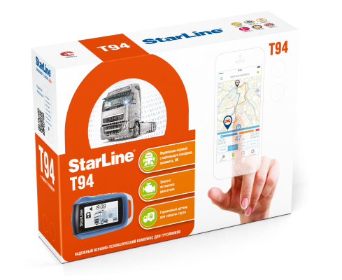 Автосигнализация StarLine Т94 надежный автомобильный охранно-телематический комплекс с несканируемым диалоговым кодом управления, интегрированным CAN-интерфейсом, опциональным GSM, GPS интерфейсом, ударопрочным брелком управления, 128-канальным помехозащищенным трансивером с дальностью до 2000 м.ТЕЛЕМАТИКА Опциональный GSM-GPRS, GPS-GLONASS телематический модуль позволяет определять координаты автомобиля, управлять дистанционно ДИАЛОГОВАЯ ЗАЩИТА Диалоговый код управления StarLine с индивидуальными ключами шифрования 128 бит гарантирует надежную защиту от всех известных кодграбберов ЗАЩИТА ОТ ПОМЕХ StarLine уверенно работает в условиях экстремальных городских радиопомех, благодаря уникальному 128-канальному узкополосному трансиверу ИНТЕГРИРОВАННЫЙ 3D ДАТЧИК УДАРА И НАКЛОНА с дистанционной настройкой регистрирует поддомкрачивание и эвакуацию автомобиля РАСШИРЕННЫЙ ДИАПАЗОН ТЕМПЕРАТУР StarLine уверенно работает в суровых климатических условиях при температуре от -50 до +85 °С благодаря высококачественным комплектующим АВТОЗАПУСК Интеллектуальный автозапуск позволяет осуществлять дистанционный и автоматический запуск двигателя по температуре или в заданное время РЕКОРДНАЯ ЭНЕРГОЭКОНОМИЧНОСТЬ Рекордная энергоэкономичность StarLine гарантирует сохранность достаточного заряда аккумулятора до 60 дней в режиме охраны благодаря использованию запатентованных прогрессивных технологий и программных решений ВСТРОЕННЫЙ CAN Телематика Обеспечивает быструю, удобную и безопасную установку охранных систем StarLine на современные автомобили, оснащенные шиной CAN УПРАВЛЕНИЕ С ТЕЛЕФОНА Опциональный GSM-модуль позволяет управлять охранными и сервисными функциями, а также получать оповещения о статусе охраны на Ваш мобильный телефон КОНТРОЛЬ КАНАЛА СВЯЗИ Автоматический контроль канала связи обеспечивает проверку нахождения брелка в зоне действия приемопередатчика сигнализации УДАРОПРОЧНЫЙ БРЕЛОК Брелок StarLine имеет инновационную ударопрочную конструкцию, эргономичный дизайн и внутреннюю защищенную антенну ГИБКИЕ СЕРВИСНЫЕ КАНАЛЫ Программируемые параметры управления аварийной световой сигнализацией, складыванием зеркал, настройкой сидения под владельца и др. СИЛОВЫЕ КЛЮЧИ обеспечивают скрытую бесшумную работу блока сигнализации и защиту силовых выходов от случайного короткого замыкания Активаторы Входят в комплектацию Сирена Входит в комплектацию Герконовые датчики Беспроводные герконовые датчики StarLine оповещают о состоянии дверей прицепа, дополнительно защищая груз во время пути Преимущества StarLine T94: Кнопка СТАРТ/СТОП. StarLine T94 идеально совместим с автомобилями, оснащенными кнопкой Старт/Стоп. Интегрированный CAN-интерфейс поддерживает более 250 моделей автомобилей, включая самые последние. Интегрированный CAN-интерфейс упрощает и ускоряет установку сигнализации, минимизируя вмешательство в электронику автомобиля. Благодаря гибким сервисным каналам сигнализация StarLine T94 позволяет облегчить установку и реализовать дополнительные функции без использования внешних компонентов. Противоугонные функции: Подключение цифрового беспроводного реле блокировки StarLine R2; Добавление GSM/GPS модуля StarLine с использованием всего одного разъема. Команды в режимах охраны и тревоги: Управление дополнительными замками блокировки дверей; Дополнительная блокир