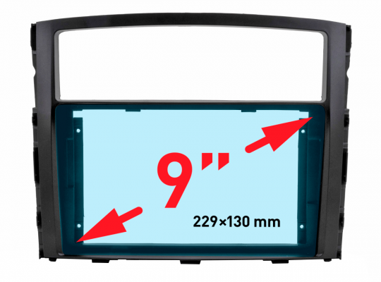Переходная рамка для установки магнитолы 9 дюймов взамен оригинальной штатной в автомобиль: Mitsubishi Pajero-4 выпуск с 06+