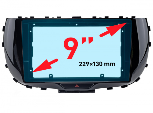 Переходная рамка для установки магнитолы 9 дюймов взамен оригинальной штатной в автомобиль: KIA Soul 2018+ Геометрические параметры устанавливаемой магнитолы: