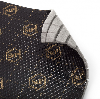 NoiseBlock Premium монтируется вторым слоем поверх вибродемпфирующего материала. Высокие звукоизоляционные характеристики достигаются за счет отнесения тяжелого слоя от поверхности, т.е. звуковая волна сначала замедляется внутри вспененного пенополиэтилена, затем отражается от поверхности высокой плотности мастики и идет обратно в пенополиэтилен, где гасится окончательно. Шумоизоляция автомобиля по принципу двойного слоя вибродемпфера с зажатым между ними звукопоглощающим материалом дает стабильно высокий результат, в автомобиле становится тихо, шумы не проникают в салон. Но данный способ ШВИ сопровождается кропотливой работой мастера. При использовании данного материала не требуется использовать комбинацию «виброматериал плюс шупоглощающий материал плюс виброматериал», т.к. они уже сдублированы. После монтажа NoiseBlock Premium кузов автомобиля приобретает эффектный внешний вид за счет черной фольги с золотыми логотипами. Рекомендуемые зоны обработки: - пол салона автомобиля Обеспечивает эффективную звукоизоляцию до 28 Дб. Препятствует конденсации влаги. Обладает теплоизолирующими свойствами. |
